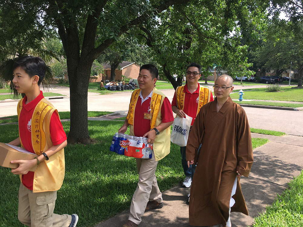 BLIA Houston communicated closely with the local charity groups in Stafford and Greater Houston area to help supplying emergency goods, such as drinking water, blankets and so on. Many volunteers of Chung Mei Temple have prepared home cooked meals, and delivered them to temporary refugee centers around Houston where hot food is needed.