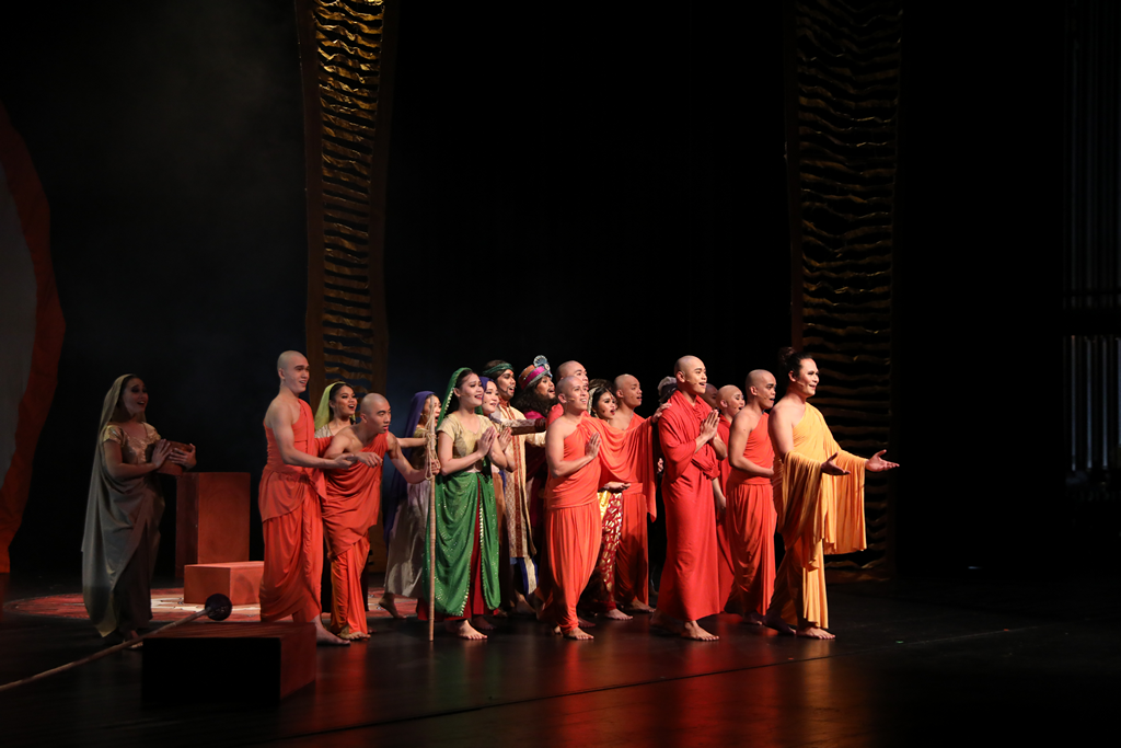 Prince Siddhartha the Musical is presented through the eyes of a third person, Ananda, who grew up with Siddhartha, as he followed the path of the Buddha throughout his life. His narration brought us to 2500 years ago, into an era where the Buddha was born and living among us. Ananda unfolded how Prince Siddhartha was concerned about life and death, cultivated spiritually, and became the Buddha in our mundane world. The story shed lights upon the fact that the Buddha was actually a human being who possessed a compassionate and kind-loving heart, as he impartially benefited all sentient beings with different social backgrounds.